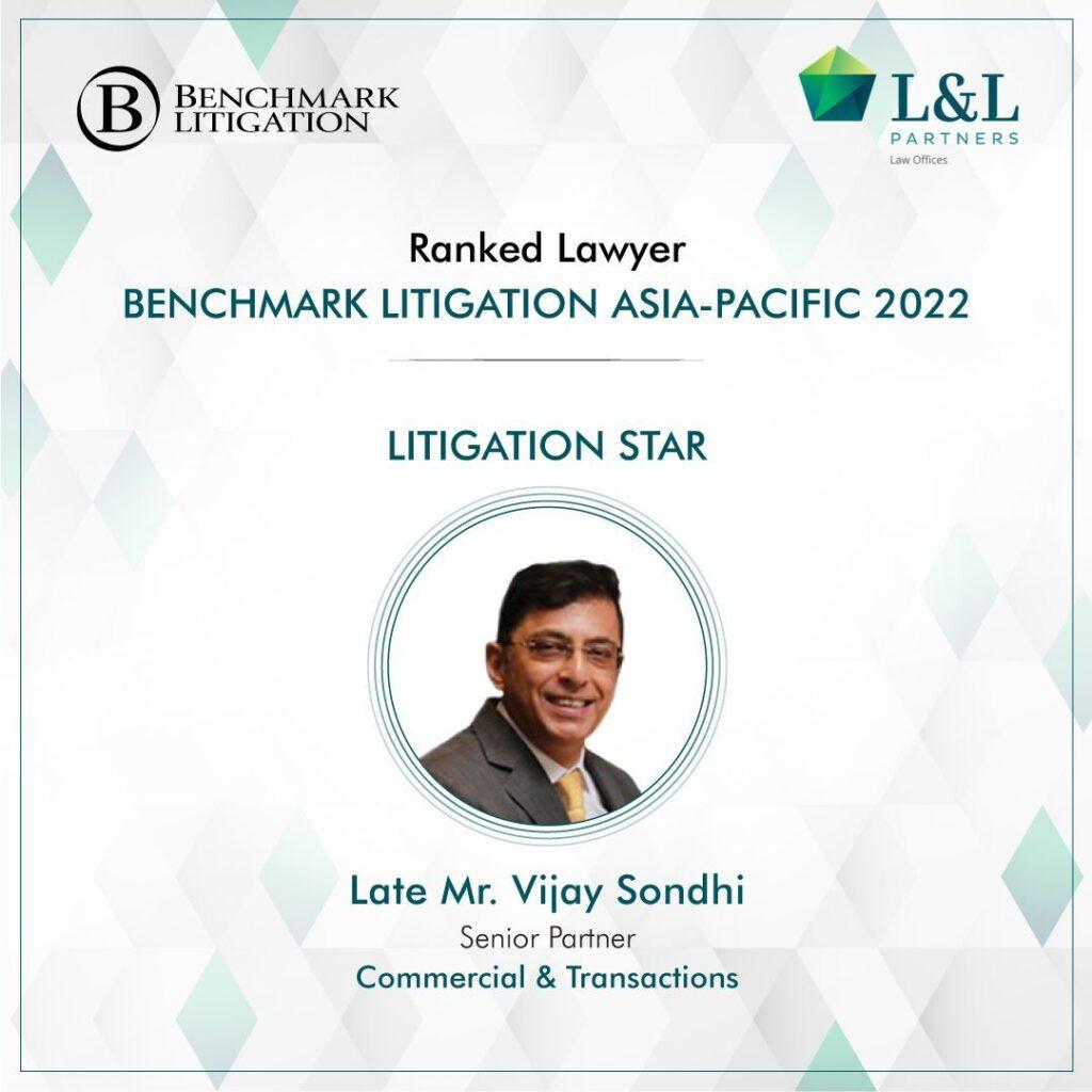 He is yet again ranked as a ‘Litigation Star’ by the Benchmark Litigation in their recent AsiaPacific Guide 2022.