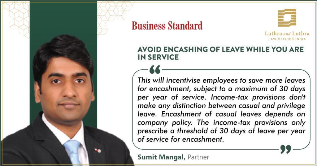 Partner, Sumit Mangal share his views with the Business Standard as the Union Budget 2023 propose to hike the tax exemption limit on leave encashment.