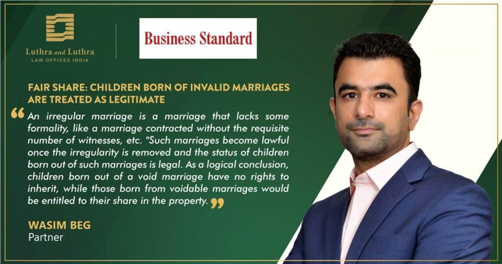 Partner, Wasim Beg has been quoted in the Business Standard in an article titled ‘Fair Share: Children Born Of Invalid Marriages Are Treated As Legitimate’ as the Court judgments have said they are entitled to rights in both self-acquired and ancestral properties of parents.