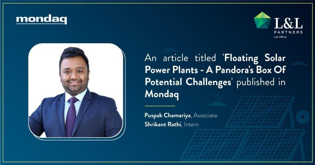 Associate, Puspak Chamariya authored an article titled ‘Floating Solar Power Plants – A Pandora’s Box of Potential Challenges’…