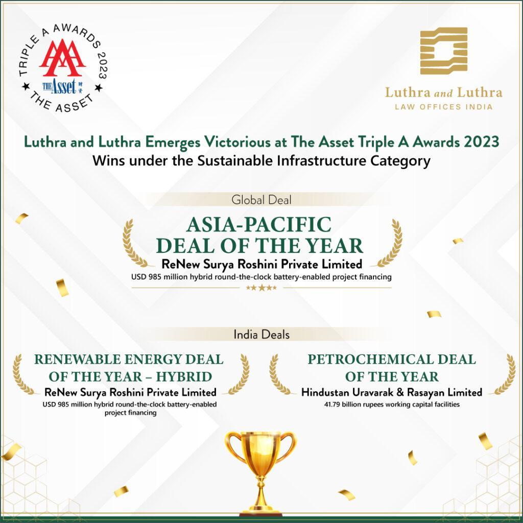 We are delighted to share with you the exciting news of Luthra and Luthra Law Offices India’s recent triumph at the prestigious Asset Triple A Awards. The firm has emerged as the winner of the Sustainable Infrastructure Awards 2023, achieving excellence in the following categories: 1. Asia-Pacific Deal of the Year2. Hybrid Renewable Energy Deal of […]