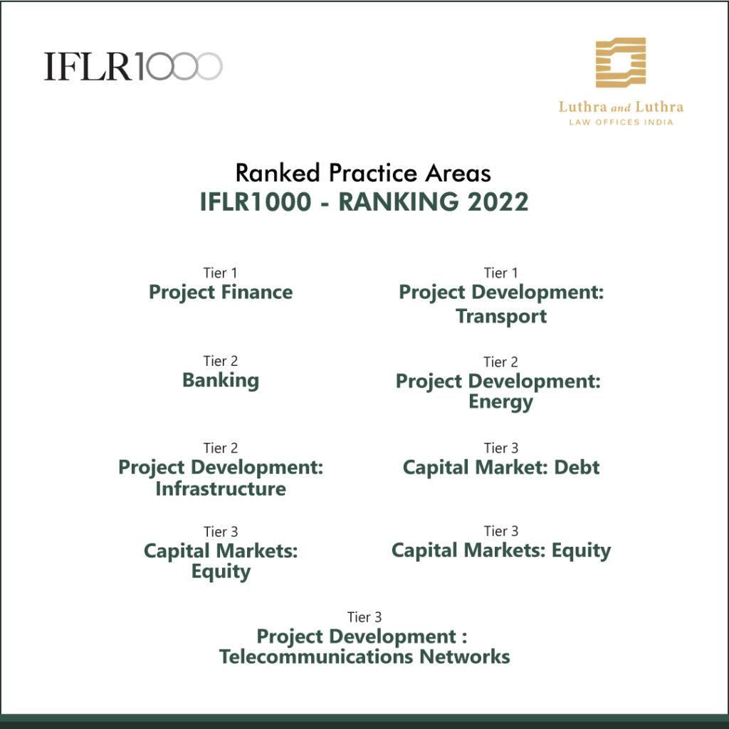 It is an absolute delight to share with you the recently released IFLR1000 2022 – 2023 rankings of Luthra and Luthra Law Offices India. IFLR1000 has been producing legal market intelligence since 1990 and remains the only international legal directory dedicated to ranking law firms and lawyers on the basis of financial and corporate transactional work.