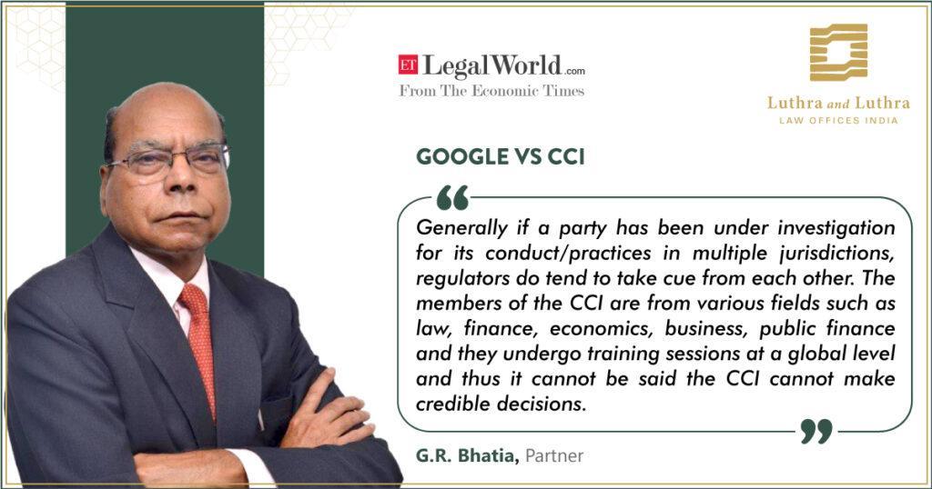 Partner, G R Bhatia share his views with ETLegalWorld on the credibility of the Competition Commission Of India ruling as Google raises concerns calling it a copy paste decision of the European Commission.