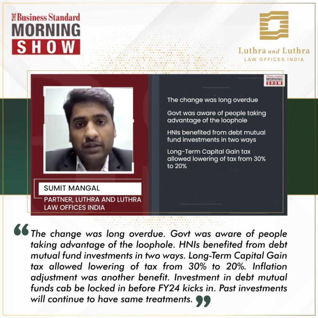 The Business Standard Morning Show captured the views of our Partner, Sumit Mangal as the new income tax rules announced in the Union Budget 2023 will come into effect from 01st April 2023.