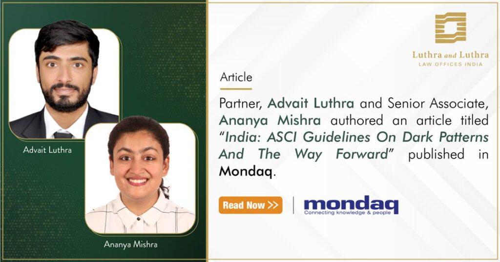 Partner, Advait Luthra and Senior Associate, Ananya Mishra authored an article titled ‘India: ASCI Guidelines On Dark Patterns And The Way Forward’ has been published on Mondaq.