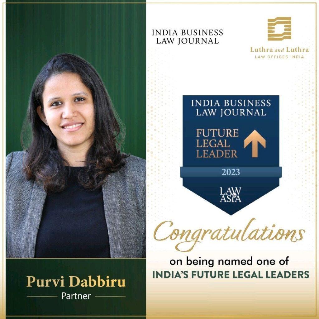 Partner, Purvi Dabbiru has been identified as one of ‘India’s Future Legal Leaders’ by India Business Law Journal.