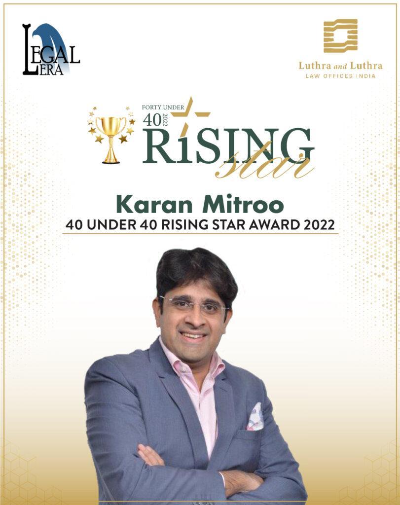 Partner, Karan Mitroo was awarded the ’40 under 40 Rising Star’ by Legal Era – Legal Media Group in a grand ceremony held at The Imperial Hotel, New Delhi on Saturday, November 26, 2022.