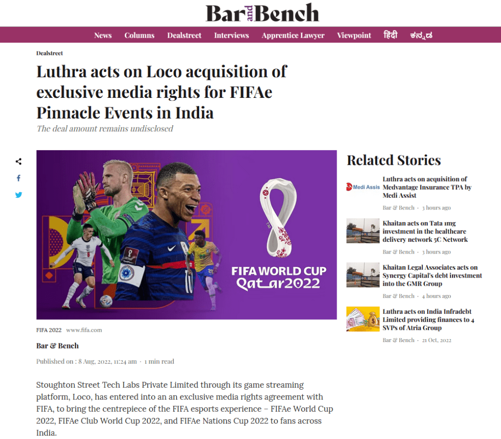 The transaction team consisted of Nishant Singh (Partner), Chhavi Jhanji (Managing Associate), and Maitri Meghani (Associate).