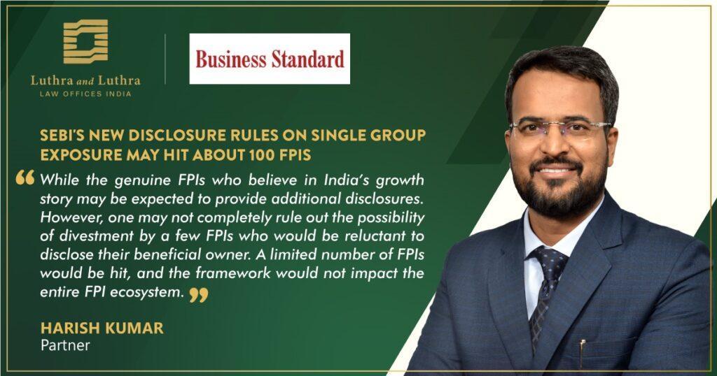 Partner, Harish Kumar in an insightful article published in Business Standard sheds light on the potential impact of the Securities And Exchange Board Of India’s new tighter disclosure rules on nearly 100 Foreign Portfolio Investors (FPIs).