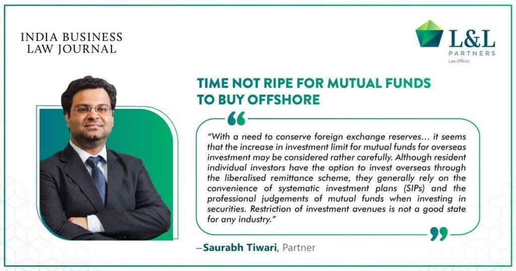 Luthra and Luthra Law Offices India – Partner Saurabh Tiwari was quoted in a story about ‘Time Not Ripe For Mutual Funds To Buy Offshore’ published by India Business Law Journal.
