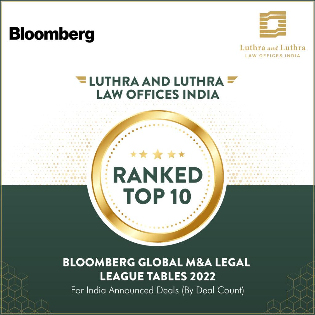 We are elated to announce that Luthra and Luthra Law Offices India has been listed among the ‘𝐓𝐨𝐩 10’ Law Firms in the Bloomberg 𝐆𝐥𝐨𝐛𝐚𝐥 𝐌&𝐀 𝐋𝐞𝐠𝐚𝐥 𝐋𝐞𝐚𝐠𝐮𝐞 𝐓𝐚𝐛𝐥𝐞𝐬 2022 for the India Announced Deals (by Deal Count).