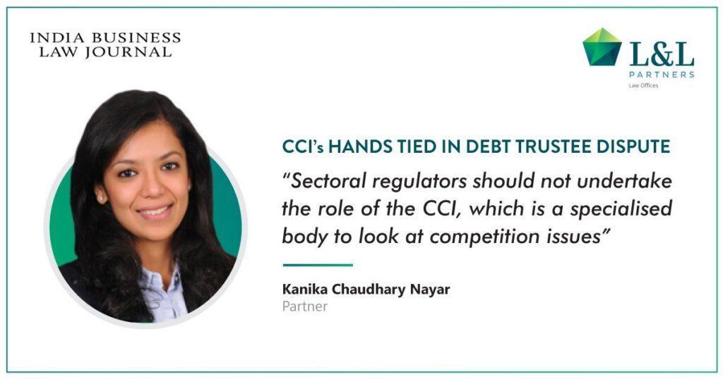 Partner, Kanika Chaudhary Nayar was quoted in a recent story titled, “CCI’s hands tied in debt trustee dispute”, covered by India Business Law Journal.